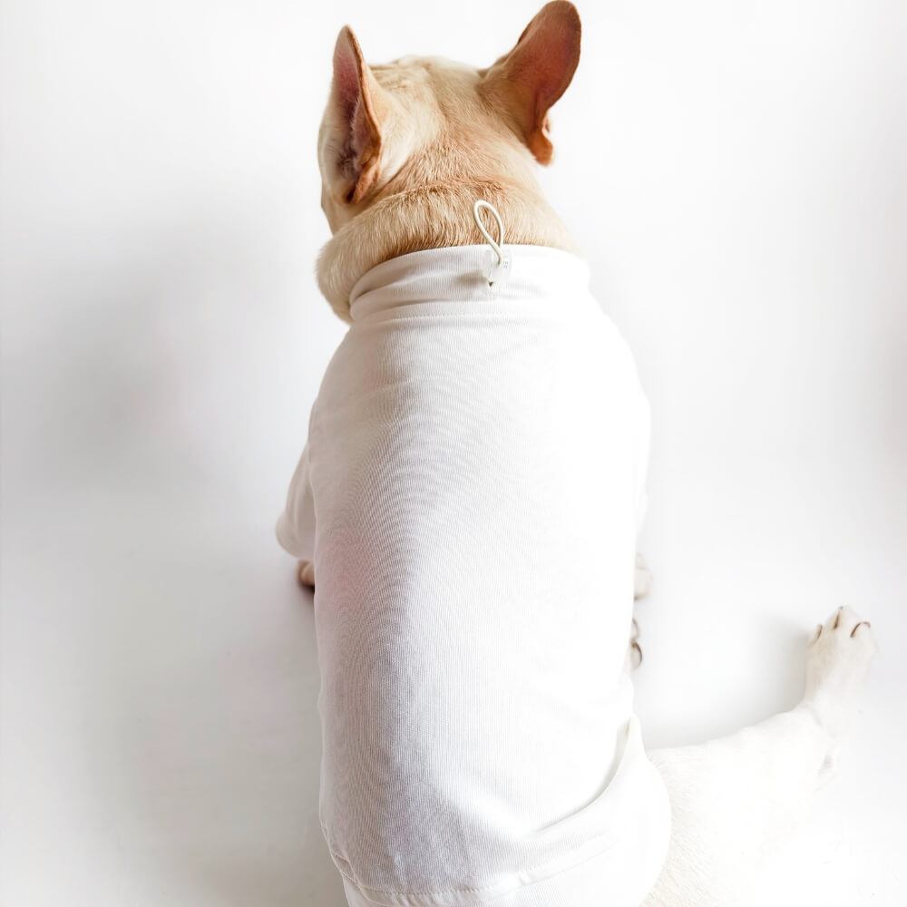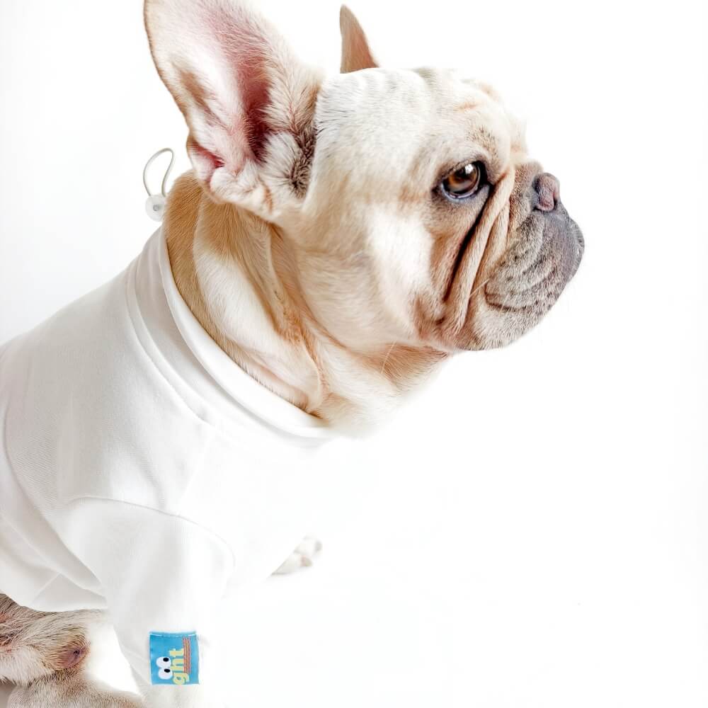 A soft, stretchy white dog T-shirt designed as a comfortable base layer for everyday wear and warmth.