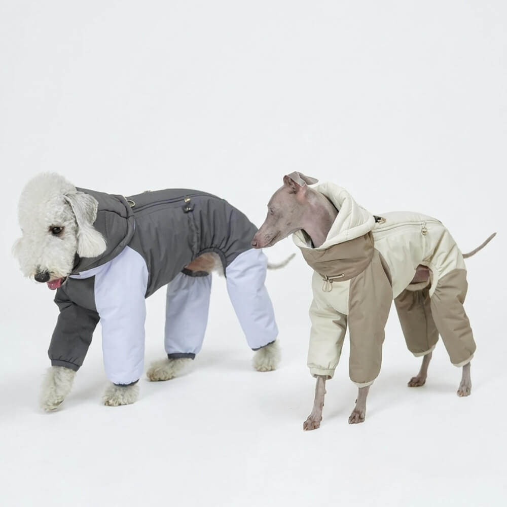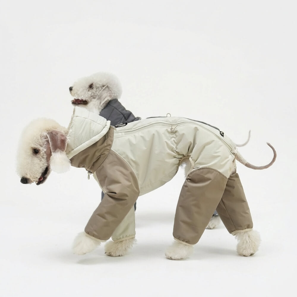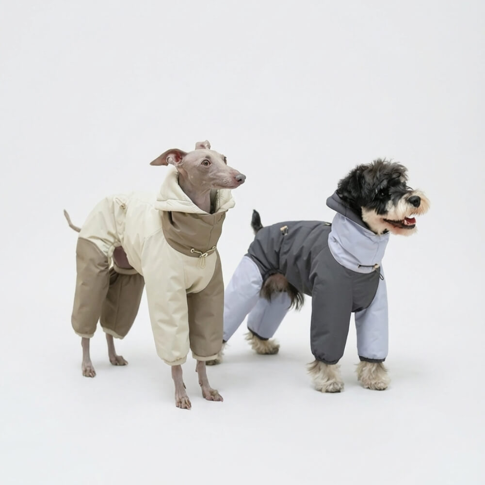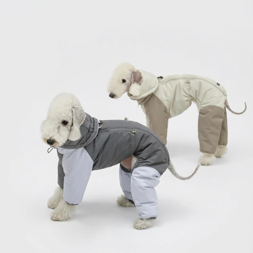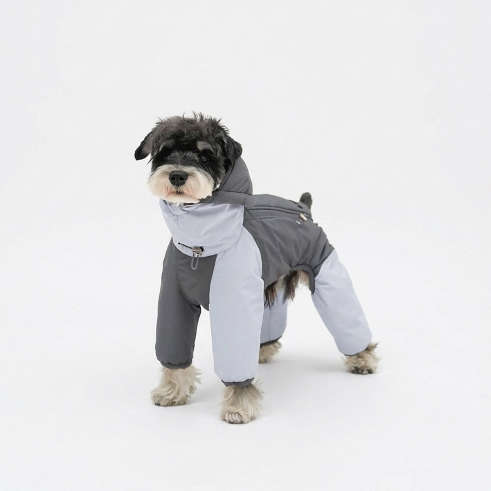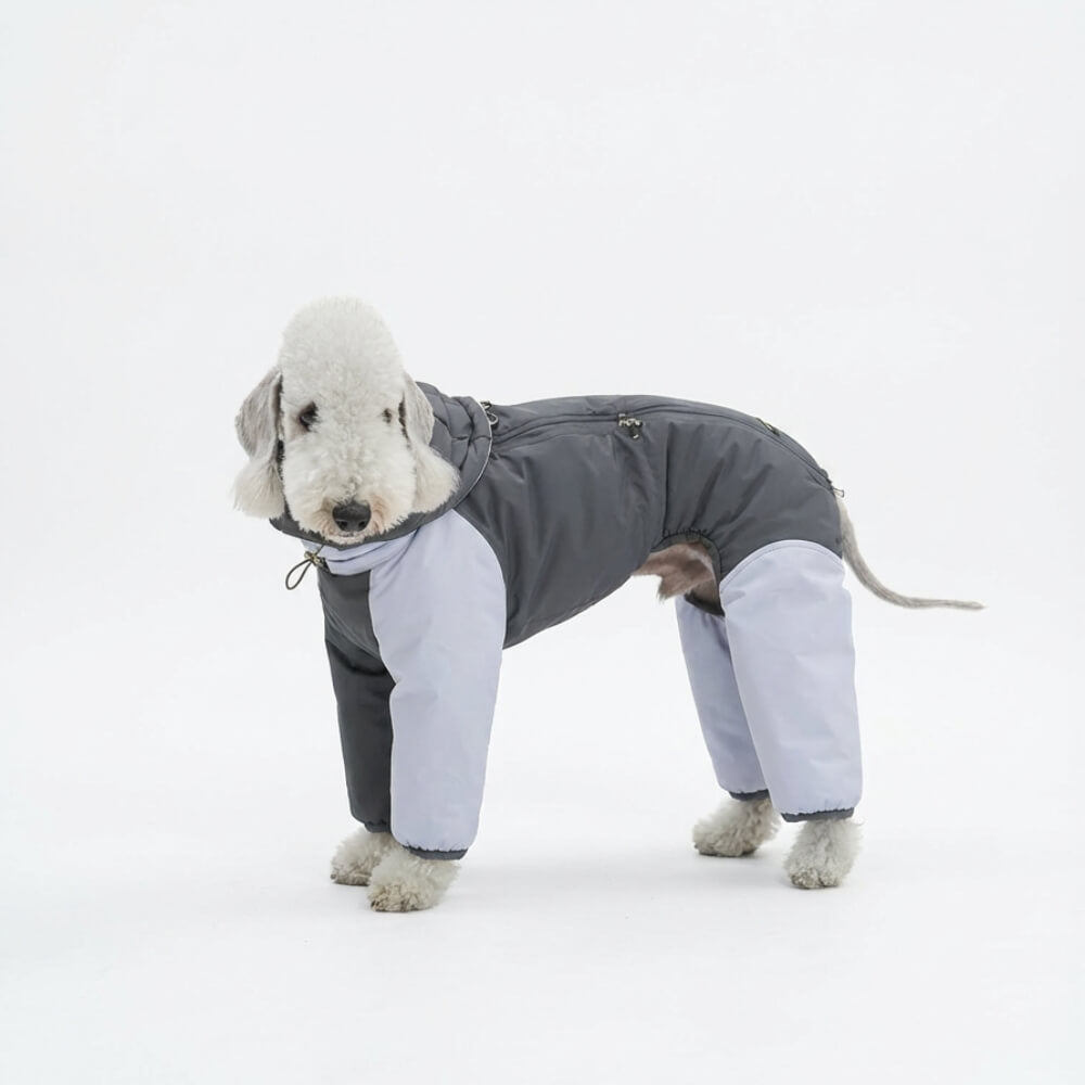A lightweight winter coverall designed to keep your dog warm, protected, and free to move—no matter how cold the day gets.