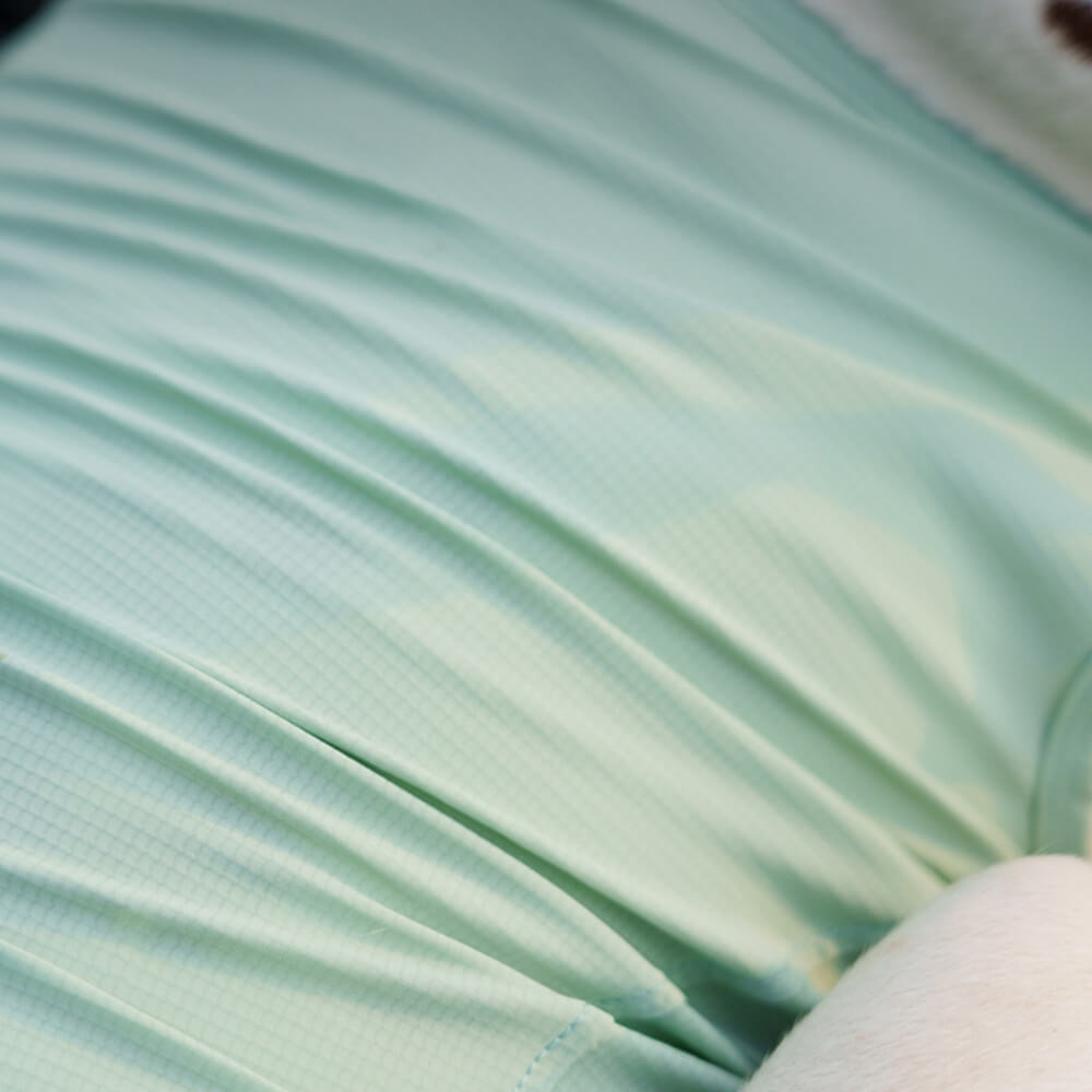 Lightweight 4-way stretch fabric (78% Nylon, 22% Spandex) promotes airflow and wicks moisture to keep your dog dry and comfortable. -