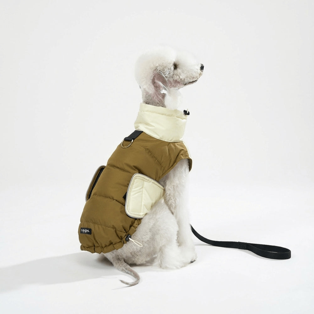 Designed for cold days, this lightweight down vest delivers warmth, comfort, and effortless wear—without restricting your dog’s natural movement.